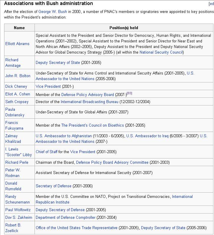 If you don't believe me, go read the neocon manifesto from the PNAC that's to blame for Bush's entire foreign policy. I'd link to their website but it's been suspended