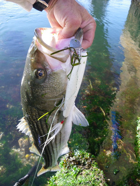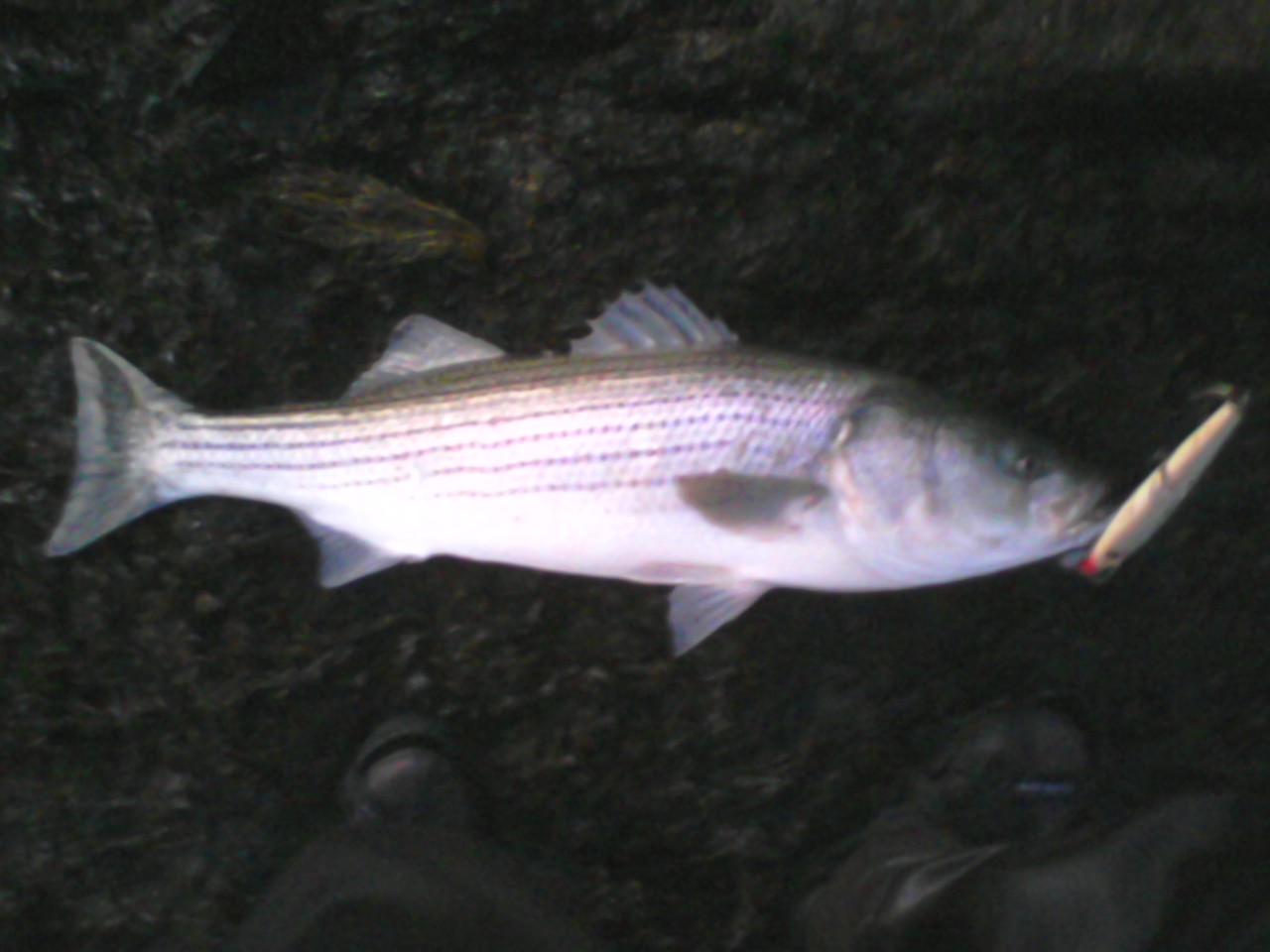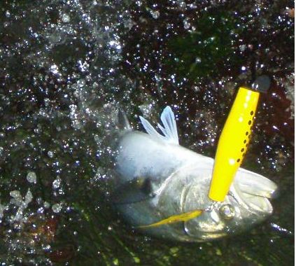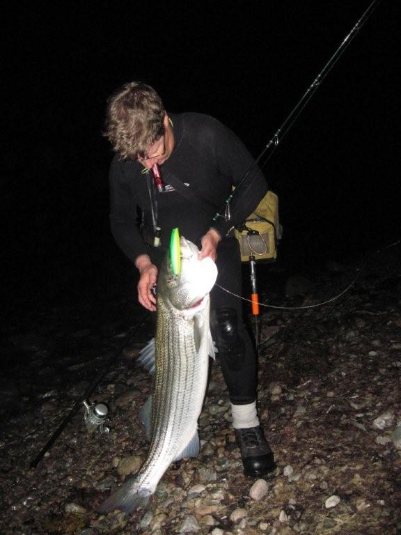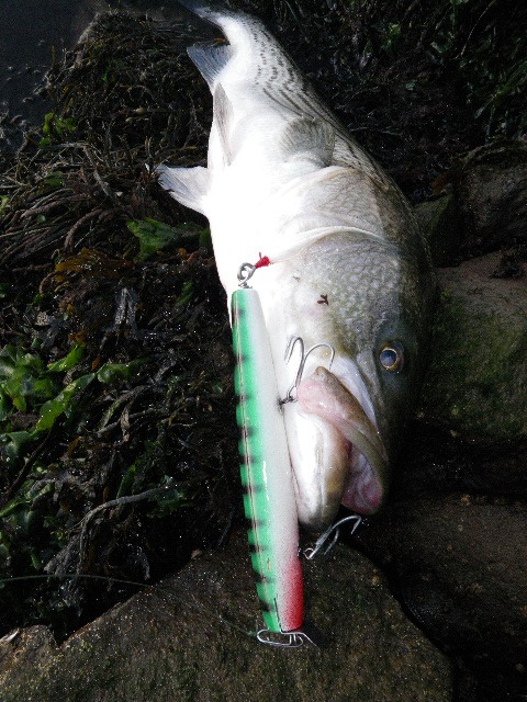 Considering they wouldn't take an eel one night, it was actually easier with plugs...unhooking a thrashing fish while you're in a precarious position ain't easy though...in that situation I'd prefer an eel or single hook offering as you need not worry about the trebles. I did get one about 35# on an eel the first night though...everything else came on wood.