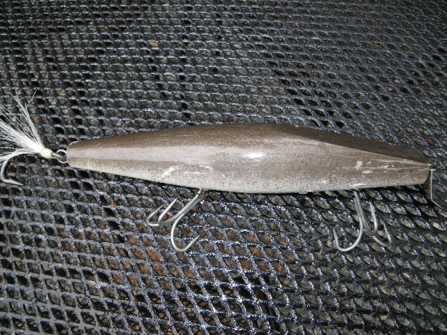 Lose the barbs, Mike. I mean it, seriously. You don't need them, particularly on large fish. You'll drop a few fish when they switch directions in close, but it beats hell out of having to go to an ER from where you sometimes fish. Also, if you are out on a rock, try a small lip gaff. Makes life much simpler. Nice plug, by the way, very nice.