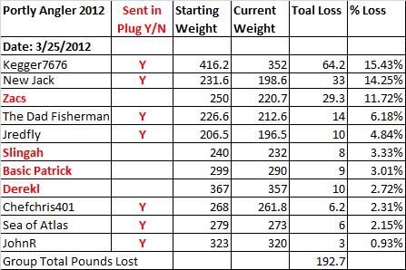 i haven't had a chance to weigh in, i have been away since friday. i'm certain i haven't lost, i i may have gained one or two back at this covention. i'll post a weight tomorrow.