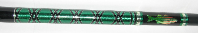 I hate to do this but I haven't used it in 2 years. The rod is in excellent condition and wrapped by Mike Thomas. It has green, silver and black underwraps with a diamond wrap. The rod has been extended 6 inches by Mike with a trigger reel seat located at 30" from the butt. If the buyer prefers, I can have the extension removed. I can meet/deliver to Eastern Ct, Mass, Rhody or Southern NH. $225.
