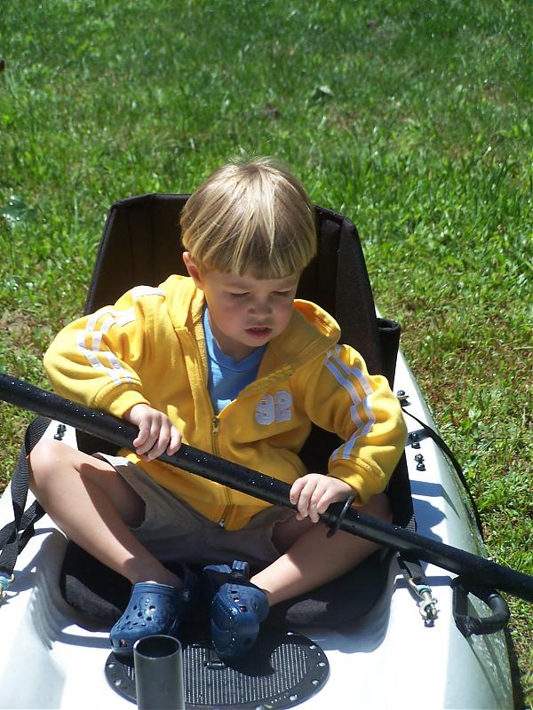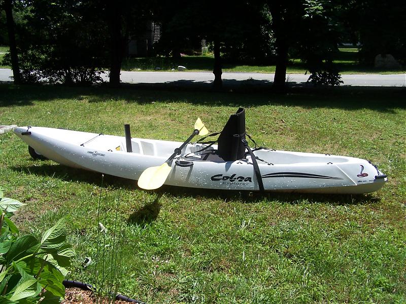 I have had this kayak for a few years now and just don't have the time to use it. Having a 3 year old son running around just takes up a lot of my free time! Its in good shape. This is a sit on top model. Comes with a tall seat with 2 built in rod holders, paddle and foam cushion roof carrying system. When I bought it... it came with a 2 wheel cart... I guess to wheel it from your car to the water. I never used it... but it is included as well. Has scupper holes and air tight storage under the deck. Also comes with a Ram rod holder positioned between your feet. Measures 12'6" stem to stern. It is located in East Falmouth. Come down and try it out.... wet a line while you are here. I'll attempt to post pictures....