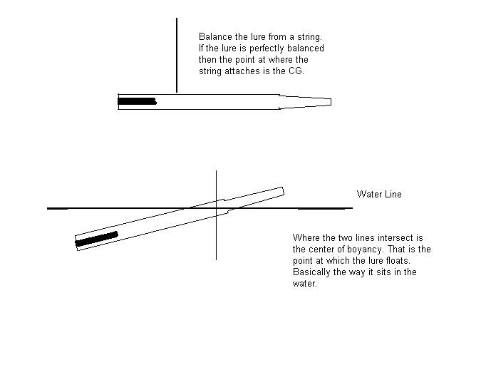 So, if I have my plug floating in the water, all rigged, if I try to lift out of the water with my finger, there will be a point where it will come up balanced and this is the cb? If I'm looking for a totally neutral cg/cb, they should be the same?
