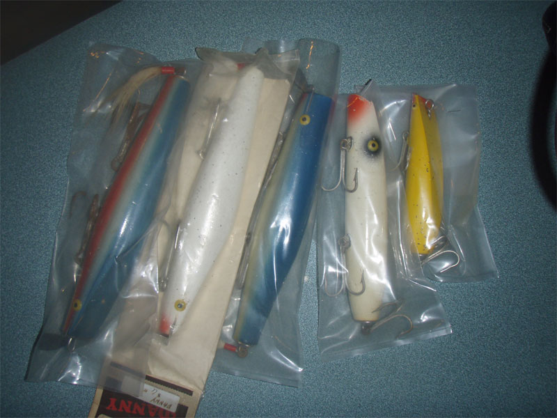 Large Blue Danny - Looks like it has seen water maybe once. Slight rust on the hooks, body is in great shape. Small Scuffs
