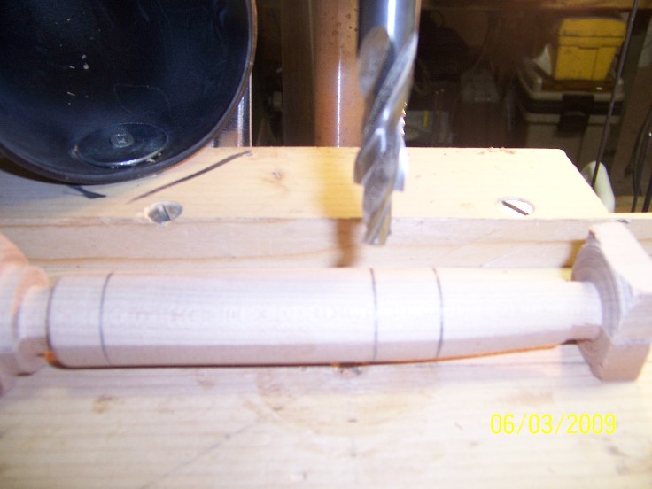 after trueing up the ends, either with a belt sander or a saw, mark you center, normaly I eye ball it, but here, you dont have alot of extra to work with, so an exact center is a must, find your center by marking the blank corner to corner, or with a center finder...