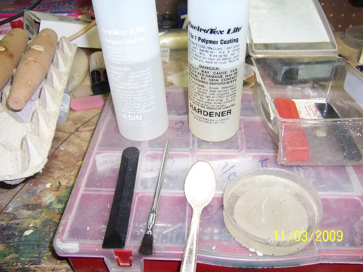 now we need to revisit the prior post on mixing epoxy... I have found, 6 teaspoons ( 3 each of hardener and resin) is enough to apply a good flood coat to 6 meduim to large plugs...