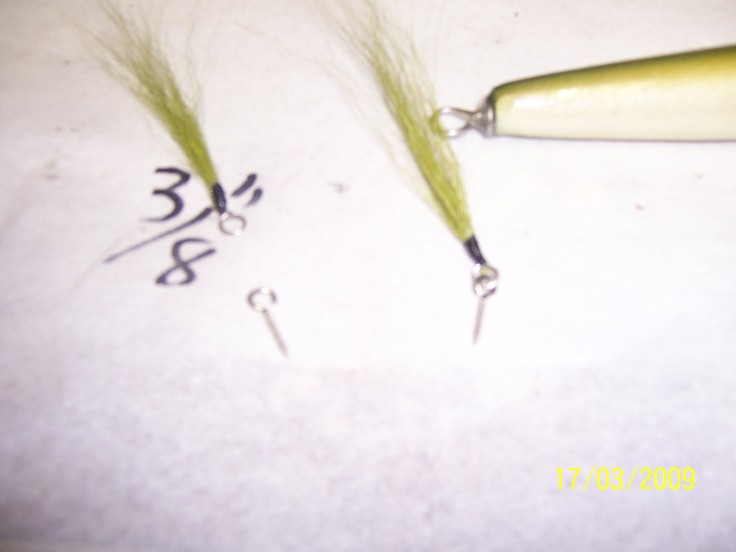 on this plug, I prefer to use cut hooks, I cut my 2/0 VMC's with a dremel, after crimping,I apply a small amount of silver solder to the "wound" to help ward off rust...