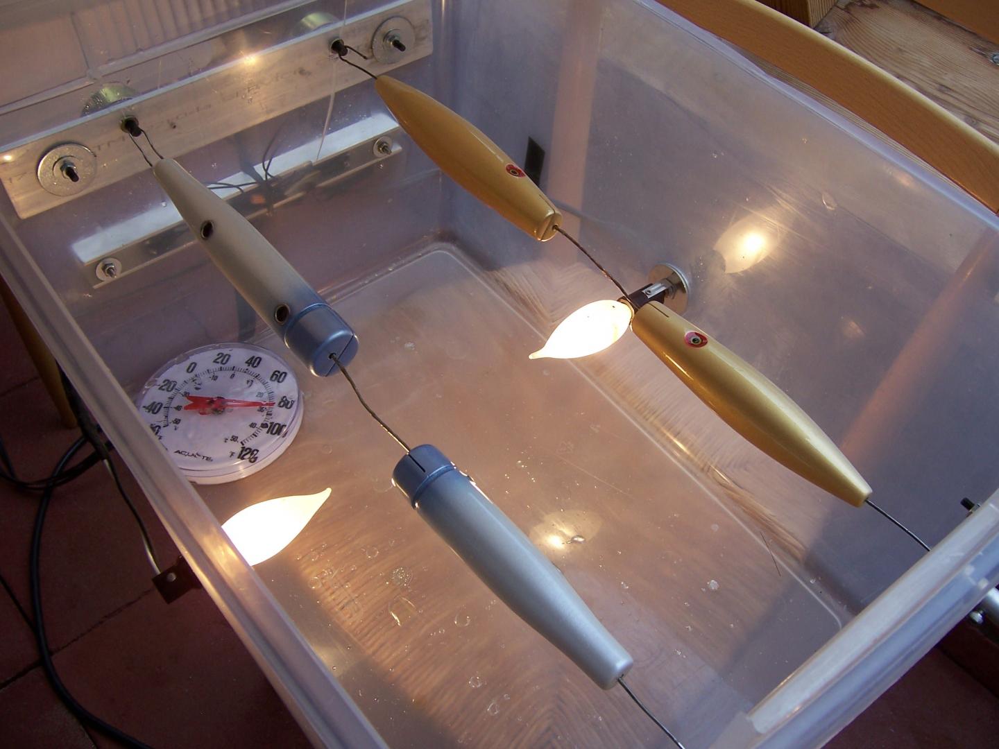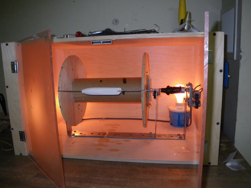 I mounted the light bulb in a small unit under the bottom to keep the spinner box as small as possible.