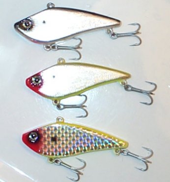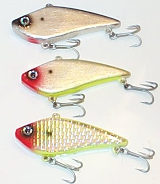 Something new that I've been playing with lately. Wood version of a rattle trap. A hair under 1 oz. Two rattle chambers. Slow sinkers. A couple of views cause its hard to get a decent photo with the flash from them. The top two have foil on the sides. Used some prizm tape on the sides of the bottom one.