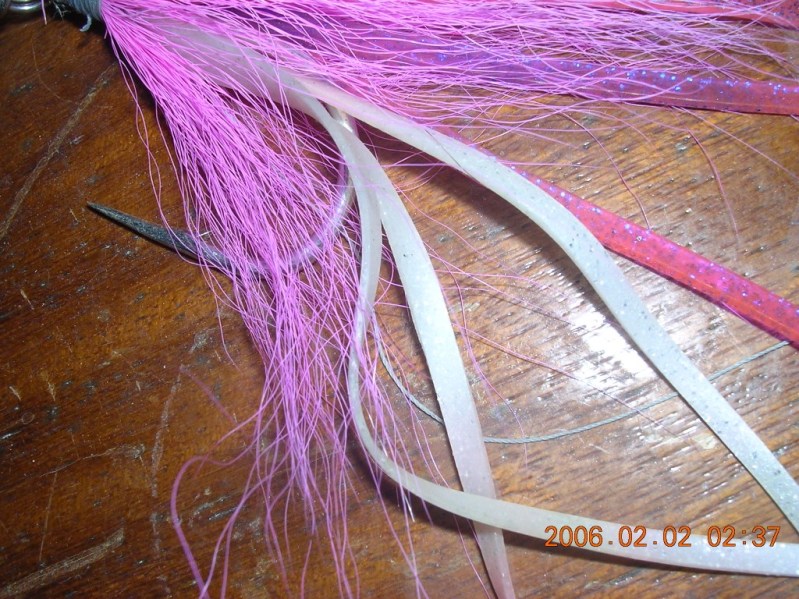 The tail is made with long saddle hackles and then a collar of short bucktail is tied on. Did one similar on the last squid plug I made. I'm doing a bucktail tying demo at the Plug Fest. I'll demo how to tie one of these tails.
