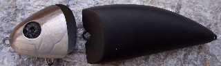 http://i171.photobucket.com/albums/u...good/Step1.jpg Then I use my belt sander and random orbital sander to clean up the cuts and shape the plug. http://i171.photobucket.com/albums/u...eb100_1143.jpg After using my dremel with a 1/16" straight bit I make the cuts for the through wire to sit and glue both sides using marine grade epoxy clamp and let sit to cure. After a little more sanding it starts to take it final shape. http://i171.photobucket.com/albums/u...ftandright.jpg The next step is drilling for the eyes and magnet. In order for the eyes to line up I drill through with a small bit and then use a forstner bit to make the eye socket. http://i171.photobucket.com/albums/u...od/drilled.jpg I sealed it with Minwax wood hardner next (this is my method and others with more experience may have different methods) http://i171.photobucket.com/albums/u...ood/sealed.jpg After allowing the sealer to dry I epoxy the magnet in place and the weights used to achieve the propper balance by testing how it floats in water. http://i171.photobucket.com/albums/u...od/balance.jpg After sanding the sealer to promote adhesion I then prime with a sandable automotive primer. http://i171.photobucket.com/albums/u...ood/primed.jpg After sanding the primer for a smooth finish I apply the base color. (this photo is actually the first/prototype plug. I didn't take a photo of this one) http://i171.photobucket.com/albums/u.../firstcoat.jpg I also sand this coat to promote adhesion of the next layer/coat of paint (metalic irredescent pearl) and apply the scales using mesh. (after which I seal this layer with a light coat of envirotex in the spray can) and scuff it lightly again to promote adhesion. http://i171.photobucket.com/albums/u...eb100_1184.jpg The next step is painting the gill plates and mouth by hand. When doing this you will understand my sealing the scales so if I am not happy I can wash the paint off until I get it right. http://i171.photobucket.com/albums/u...od/lftface.jpg I also seal this coat so when spraying on the overall color I can wash it off if I'm not happy without having to redo the previous coat. The final color coat is thinned and applied in light coats until I have the right amount of the scales showing through. I have only gotten to this point and have to wait for the weather to warm in order to finish the paint.:( I will see if I can make the eyes in the next day or two and will add that process. |