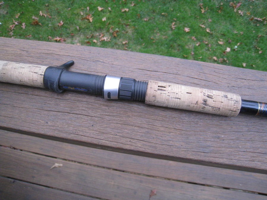 J. K. Fisher is 10'4" total length. It's wrapped conventional, rated 2 to 6oz...w/8 Fuji sic guides, AAA ring cork handle, graphite Fuji trigger reel seat. It was re-wrapped/re-built and extended by Mike at M&D Tackle near the Ditch. The cork butt, guides and wraps are all in good shape. The blank is good. The only minus is that the glossy finish coat on the blank is about gone. $195.00 picked up in SoCo, RI. REDUCED TO $175