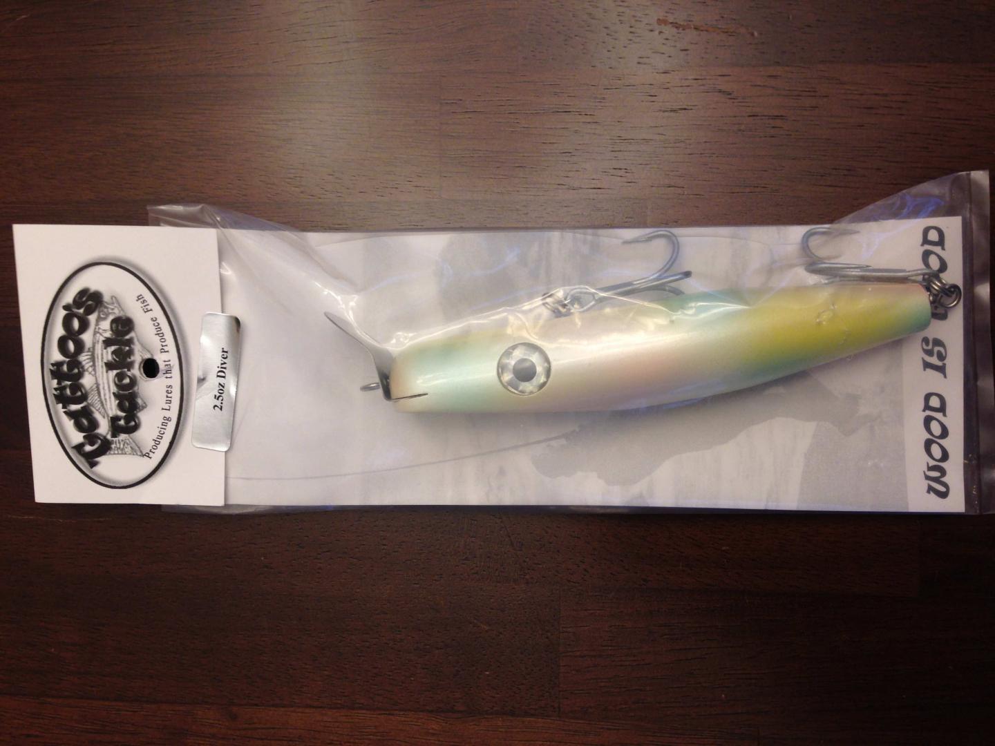 And the fourth lot is: Swam-once Tattoo 2.5oz. Diver bunker (hook pointer on tail and light discoloration on belly swivel) $15.- Tattoo 2.5oz. Diver wonderbread $20.- Flat rate $5 Priority shipping for any quantity Attachment 58093 Attachment 58094 Attachment 58095 more pics in next post |