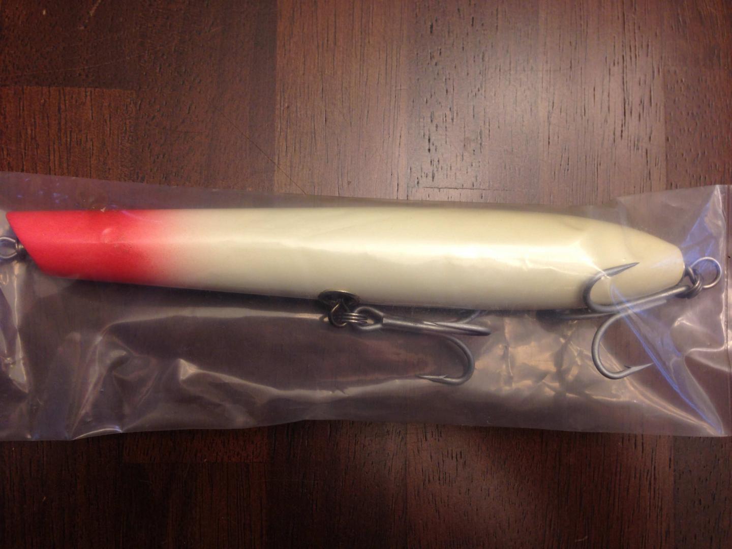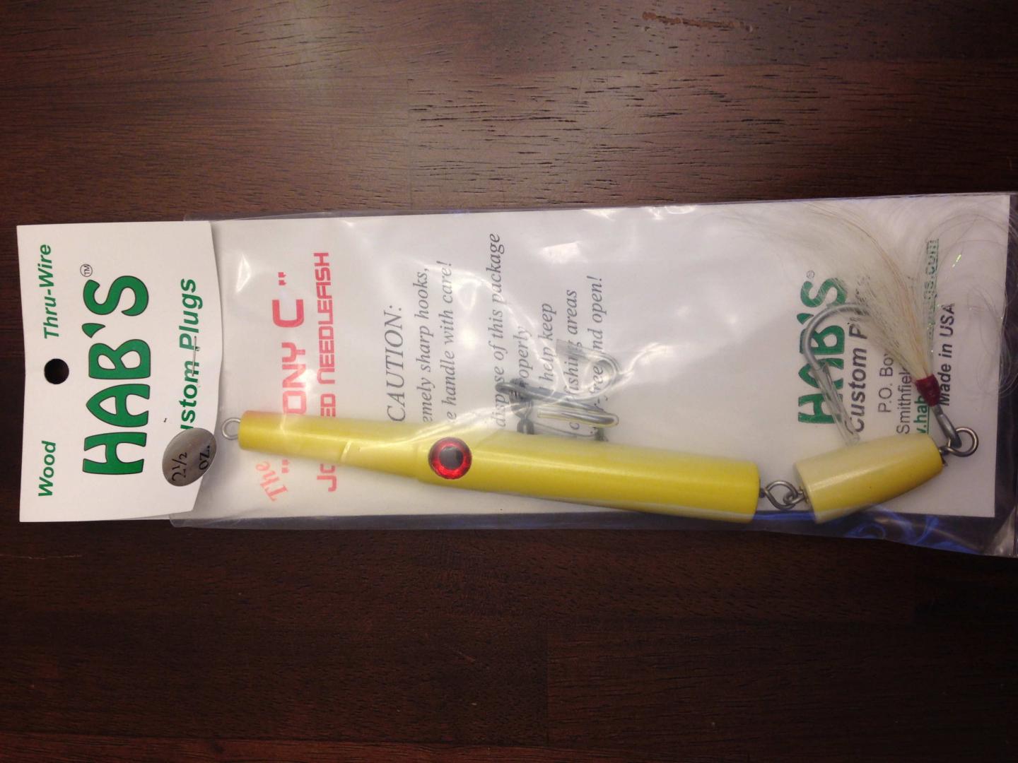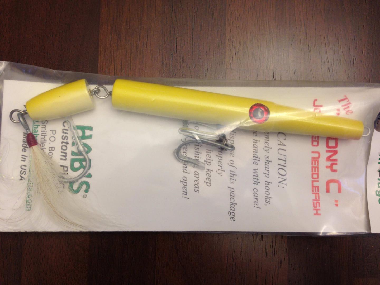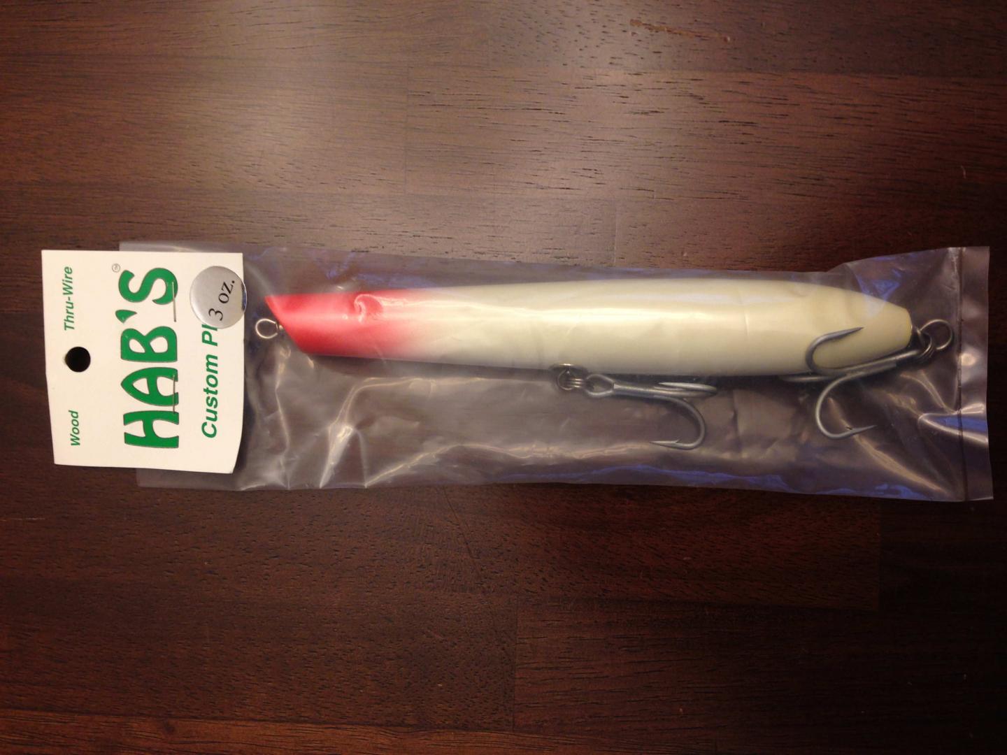 And the eighth lot is::uhuh: Hab’s Sr. 3oz. Pencil (not Canal style) white/red head) $50.- Hab’s Sr. 2.5oz. Tony C Jointed Needlefish yellow $75.- Hab’s Sr. 2.5oz. Jointed Swimmer olive $55.- Flat rate $5 Priority shipping for any quantity Attachment 58111 Attachment 58112 Attachment 58113 more pics in the next post |