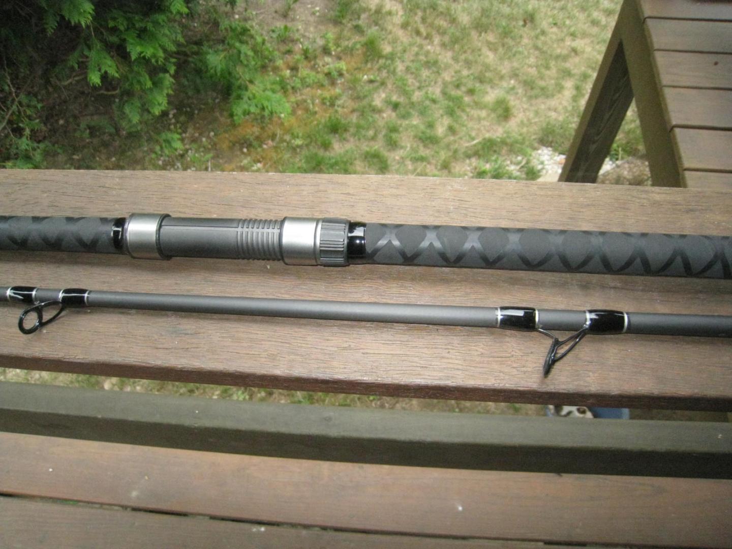 In almost un-used condition. Wrapped spinning, black on black, flat black blank, x-flock butt wrapped, Fiji seat, Fuji concept guides.... almost new, two piece even split, rated 2-6, 24" to center of the reel seat. No issues. $195 picked up in SoCo, RI.