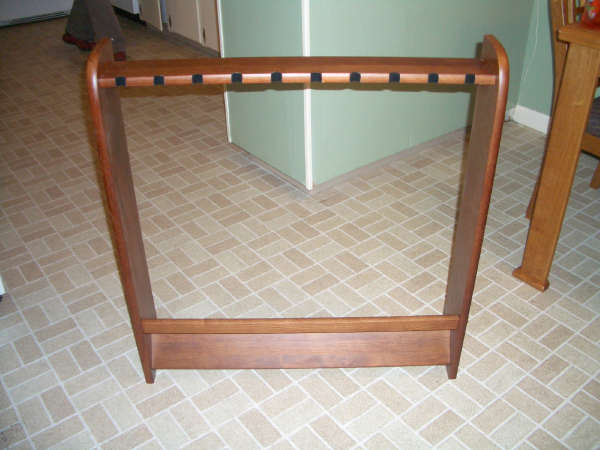 Bought this at Cabellas. Moved fishing shop into the basement and celing is only 6'8", so this is kind of useless for me now. Fits 10 Rods. I think the finish is called Cherry. There are few very slight scratches from normal use, but they are not at all noticeable. $75 OBO. Will deliver in RI or SE Mass. Or pick it up at Plugfest or TFCTFN.