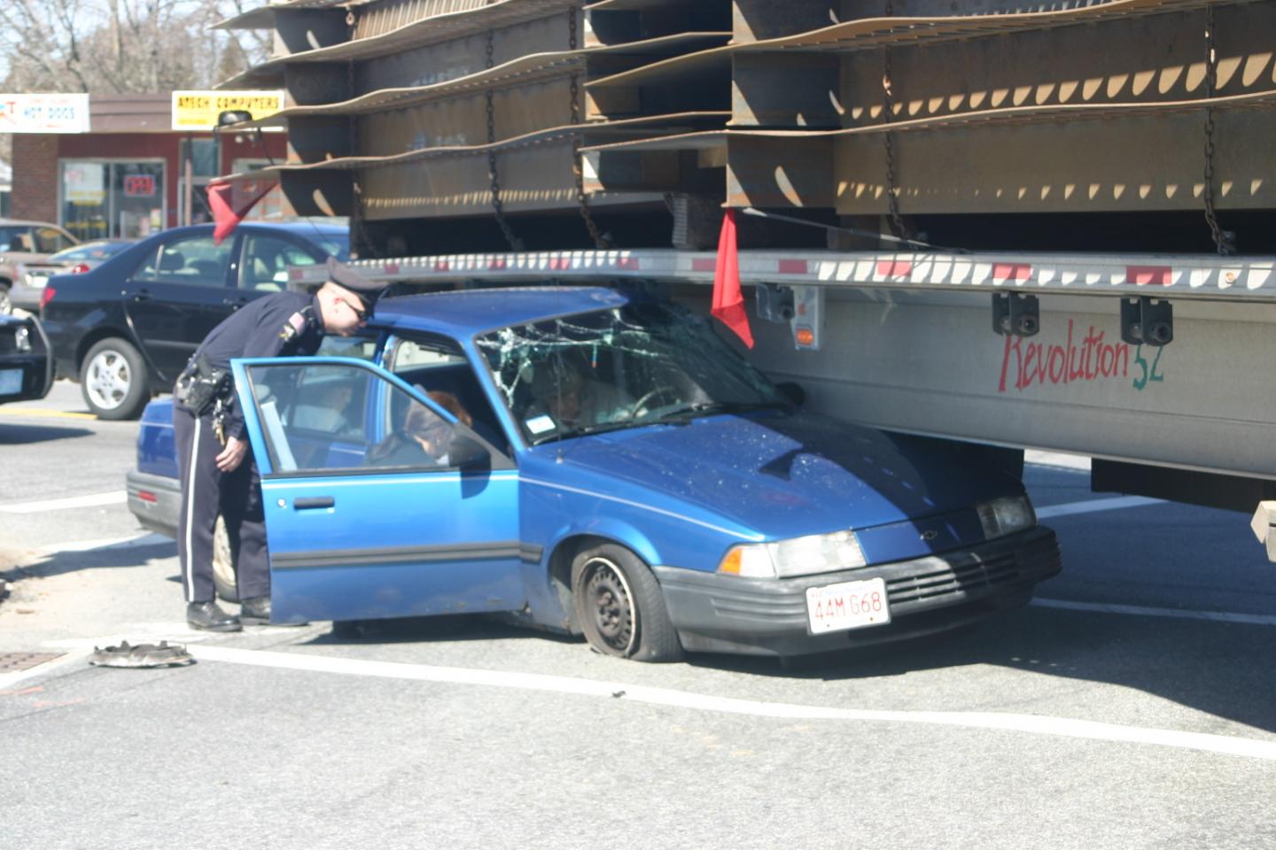 This guy was texting and didn't see this rig taking a right turn. The road is ONE lane and the truck was hugging the left side of the lane to make a wide right turn. This guy (not paying any attention to what was really going on) thought the truck was going left. As you can see, the end result was not good.