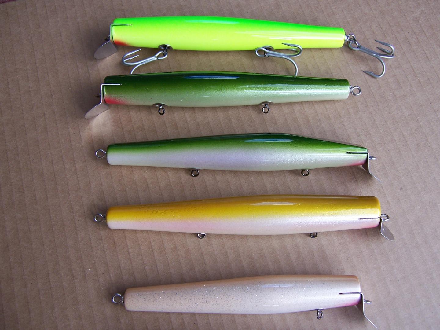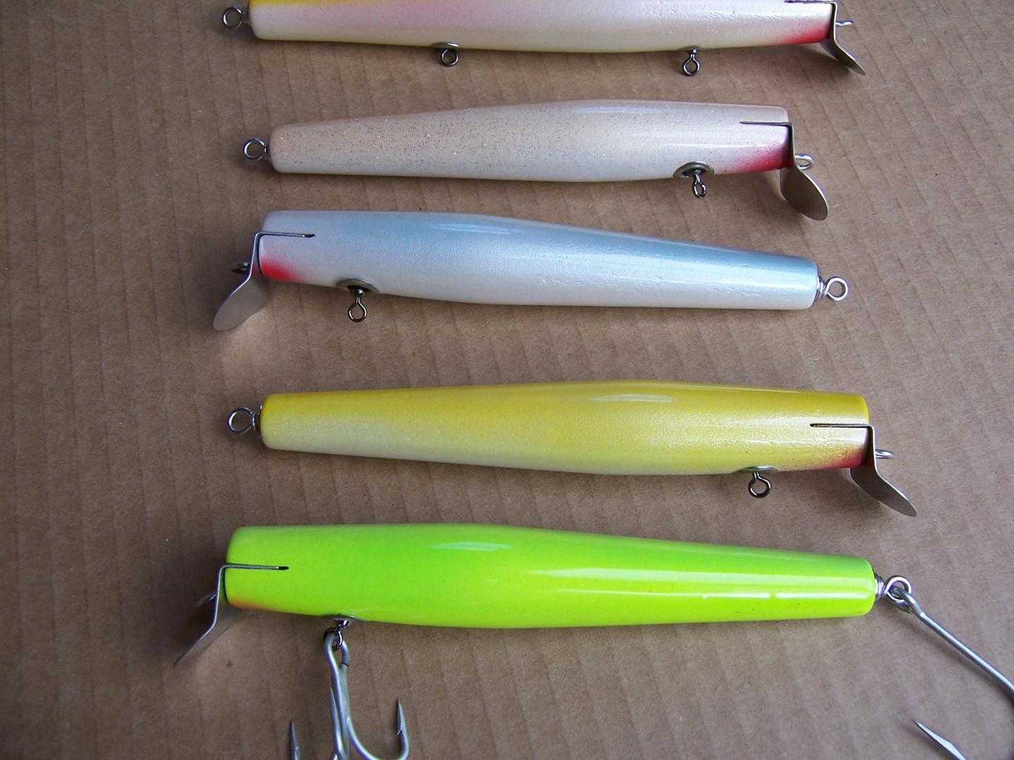 Some small Eely's Beachmaster copies then some of the regular size ones top three are Pichney copies and 4th one is a Beachmaster copy. Lip is the difference shape is the same. Then some older style Beachmaster dannies and 2 small Pichney dannies which I look forward to using this year. Picture makes them look fatter than they are in real life.