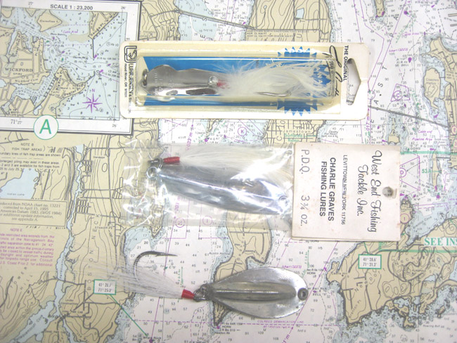 A Tony Acetta Spoon NIP, a 3 3/4 oz West End Charlie Graves NIP and a Charlie Graves Butterfish