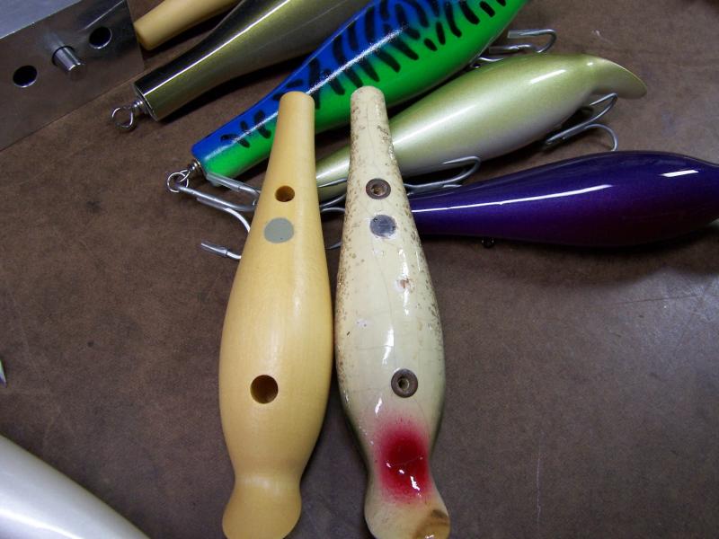 here area few pics of the plug compared to the larger size one. The mack is Tagger the large olive is Tobias. The smaller ones I made and an original is on the bottom.