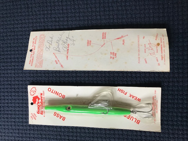 Cleaning out stuff I know I'll never fish, these two I won in a raffle in 04 and Al Gag was putting on a seminar at an MSBA meeting and signed the back of both. I'm curious what they are worth, probably not collectible, but what do I know, I fish plastic exclusively. Maybe if there is a collector with the name Bob, since he signed them To Bob Best Wishes Al Gag 04