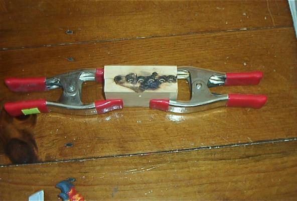 Once you know which length you want, drill 5 or 6 holes to that depth and pour away. I was just using some old waste 1X2 pine and it held up thru 4 pourings ok. Once the lead solidifes I unclamp them and pop em out of the mold and start over.