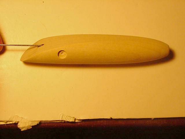 A reject, off center thru wire out the side Slipknot needle, now dead on, patched and ready for paint.