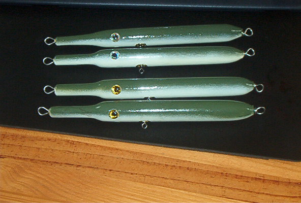 Here's a few needles that I turned last year that I finally finished. I did not know how to thru wire last year so I put these on hold for a while. These will be getting hooks and going for a test swim after work tonight.