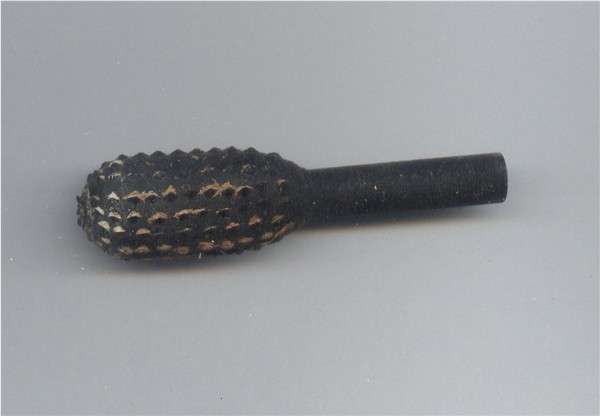 to do the mouths i started with a forstner bit, next i do the angle cut on the bandsaw (you can't drill with the forstner after the angle is cut). then i round them out with this oval shaped rasp. i chuck the bit into the drill press and hold the plug (i don't spin it). if you only move the plug in the opposite direction the cutter is spinning it will not 'grab' if you try going clockwise you will have problems. after the rasp i sanded with some 60-80 grit, then 120-180 to finish.