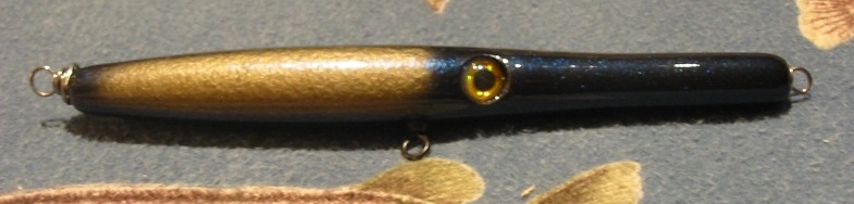 Hook and eye placement on needles, each builder has is own reasons, I guess. I have noticed a trend lately, to move the eyes, and belly hook more to the middle, as opposed to the more traditional front third of the plug. We all know what the sand eels looks like, and where the eyes are on them. I am attaching a photograph of an Atlantic Needlefish.