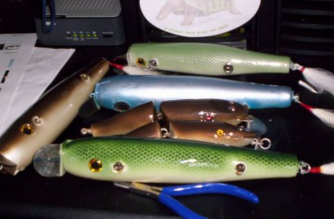 of lex and pikies. all seem to swim the same as oringials. no difference with more epoxy.eye is on bottom to mimic wounded bait fish