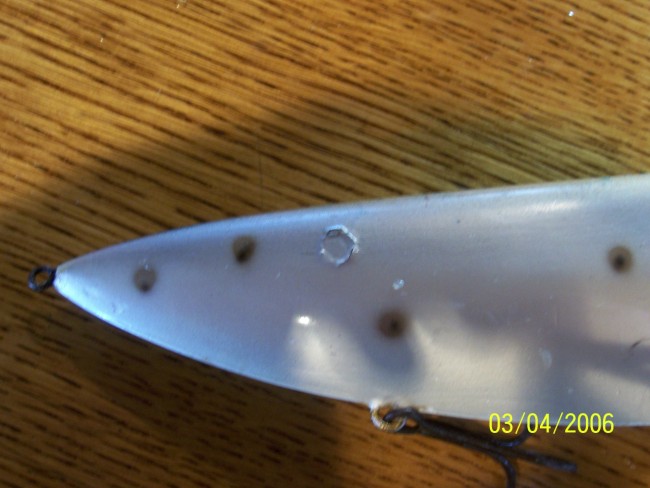 As for the dimensions they are like the frech articles only diffrence i see in the one george made (George you are soooooo close on this its amazing)and the frech one is that George went to the smaller width he should go with the wider one on top also the back belly hook should go back another 1/2 inch or so i'll measure it exact tommorow with a vernier caliper.As for the float test he nailed it floated the same.I'll look at them again tommorow and see if i can pick up anything else i'll also do a weight comparison.