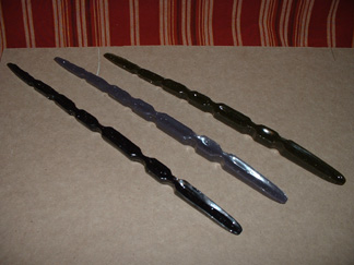 Rigged a few of these up today. Can't wait to try them out! As directed, I did them as I would a rigged eel with a 6/0 siwash rear and a 7/0 siwash front. I like the thought that these can be thrown on conventional gear. I have trouble properly working/throwing a 9" slug-go, but these feel heavy enough to run just like a rigged eel.