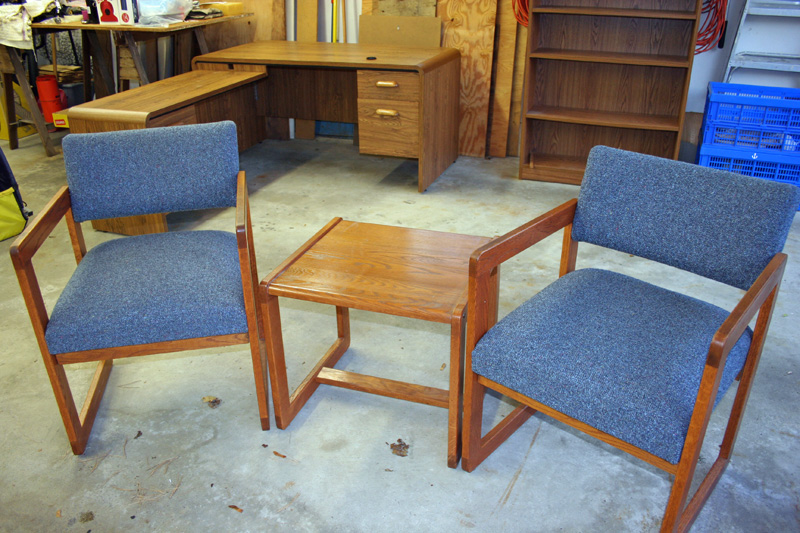 This set is in like new condition. I used it in my reception area. It could also be used in a den, study, etc. etc.