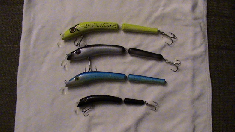 2 of the 4 have been in the water 1 time, the small one caught fish this fall and the yellow works fine just needs a eye, all are fishable.