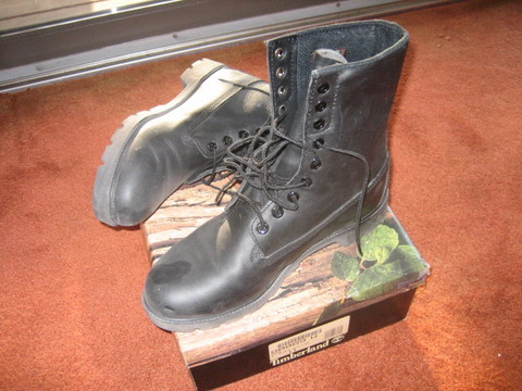 Timberland Model 80089 black workboots. Waterproof, lined 8" tall, worn for about 3 hours walking on clean surface. I have very wide feet and EEE is what fits me. These are just slightly too narrow. Bought them new, tried them out and they just won't work for me. Almost ne condition. $40 picked up in SoCo RI. I'll ship them for whatever it costs me.