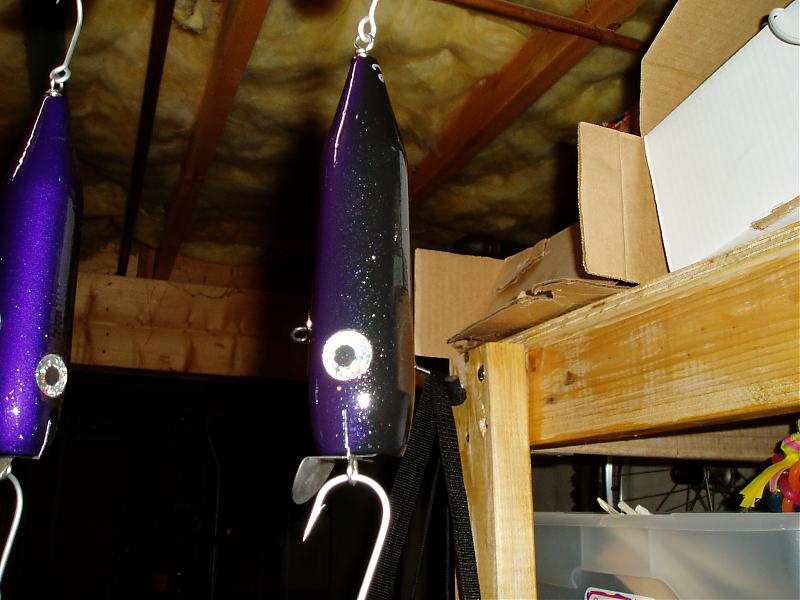 No awesome paint like you guys, but they look decent, and swim like mad. The burple/black will dive real deep, 7-10 if you let er rip. Does 2-3 on a moderatly slow retrieve, wide, eratic, sweeping action. The wannabe surfster is an owesie, and on its way to north carolina friday.