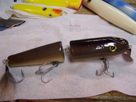 Looking for a jointed round nose metal lip atom pearl white-rose tinted.8 inches from nose to tail 4 ozs heavy duty no hooks all around... stubby tail that with a big siwash with hair and feathers will kick up on retrieve.