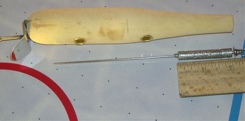 Here's the thing I found really interesting. With the hooks and solder on the old one, the point it balances at is 3 3/4" from the tail, which just happens to be the exact midpoint of the plug as it is 7 1/2 " long. It made me start wondering if that was how they determined how much solder to add. With the solder it is evenly balanced front half to back half. My dad just knew they always did a certain number of wraps of solder, so I wonder if the fact that it was balanced is just a concidence.