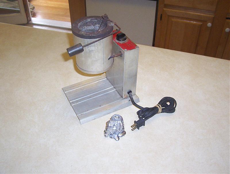 Fired it up this morning and it works fine. 120 volt, 500 Watt, 10 lb. Capacity. Comes with 10 lbs. of lead. Pickup in Plymouth. $35.00.