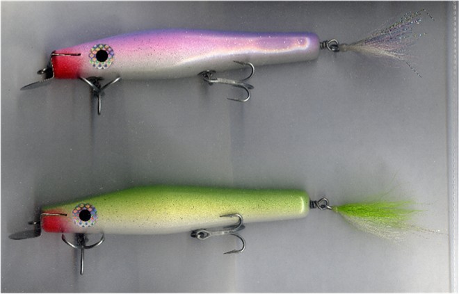 Nice shapes. Why such square lips on the surface swimmers? You might try bending one down to 45 degrees or more......should let you work it slower and, if you are lucky, you might get one that you can "pop".