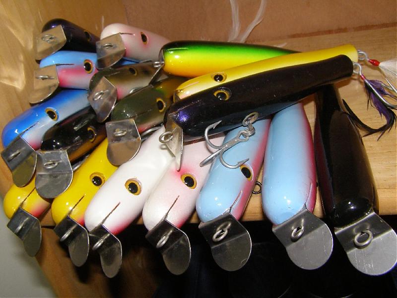 2) Built a bunch of these, but this one is a special daytime plug. Ever watch 25lb bass imitate Polaris missiles?