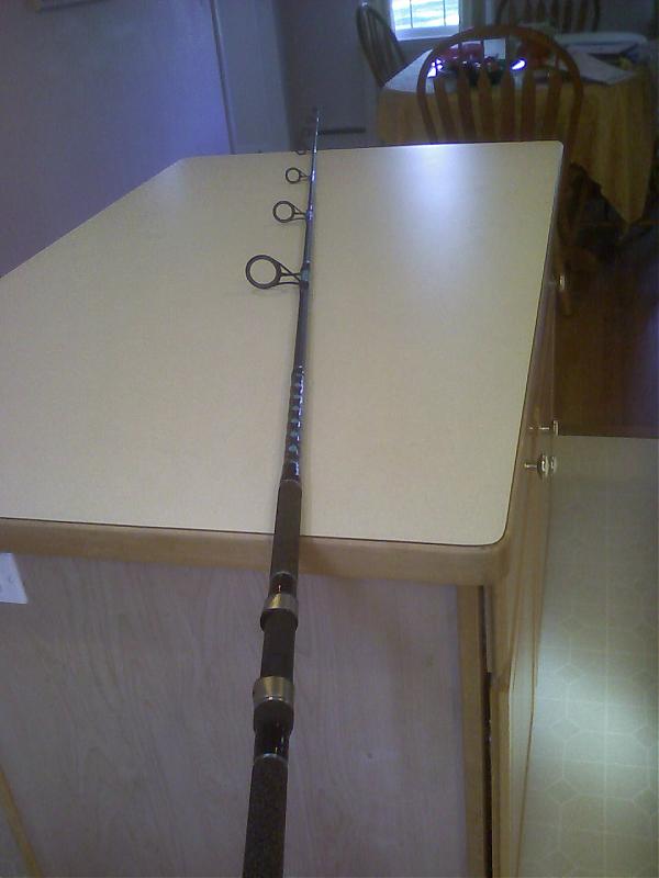 9'-0 custom wrapped by cms spinning rod BGSW1088 9'-0 15-30lbtest 2-5 lure wt. rod is in Mint condition. fuji guides and reel seat