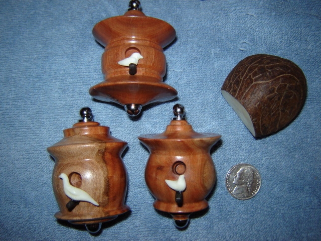 The ornaments are made from Coolibah that comes from Australia, Shannon made all the ornaments and she hand carved the birds from Tagua nut. There is no way I could ever do anything thing that small with detail. We have always bought ornaments for the family each year, this year we made them. Shannon also used a wood burner to add our T,S - logo and 2007 on the bottoms of each one.