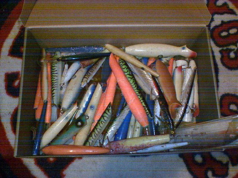 welp... today we picked up our instant plug collection in a box. and decided instead of trying to make our own this year, we will learn the ins and outs by restoring most of these. some need new hard ware, some need paint, all needed new hooks. it's going to make for one hell of a project between now and this up coming season. spent all night taking hooks off.