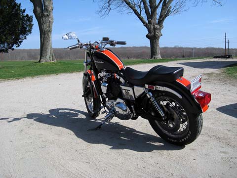 1987 Harley Davidson Sportser 1100 (30th Year Anninversary model) Black and Orange with White and Gold Pin Stripe. I am selling the bike because I just don't have time to ride it. It is in excellent condition, and is a 30th year anninversary model although the tank and front fender are not original, but can be purchased thru HD. Bike lowered 2 inches, has drag bars with a custom center bar mounted speedo, corbin 2 person seat, and chrome everywhere but the forks. The speedo was replaced, but has approx 15,000 miles, and runs excellent. It is a 4 speed with no modifications to the motor. Has new head gaskets, braided steel brake and throttle cables, and straight pipes (sounds awesome). Everywhere I take this bike people ask me about it, it is a very unique looking Sportster and is a lot of fun. If you remember the Sporsters of the 50's, this looks a lot like it. Selling at a very reasonable price. Bike is located in Exeter, RI. Here is a video of the motor running. It sounds better in person.