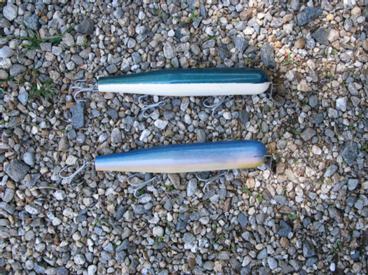 Here are two recent ones.... The top one is thinner than the bottom one and the action is brighter. The white really flashes. The bottom one is a copy of a Danny Pinchney profile. A bit bigger and heavier than what I typically do, almost 8 1/2" long x 1 1/4" diameter. Really digs in heavier current.