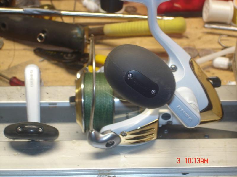 Barely used. I just put a brand new over sized handle on it. Got it as a back up reel and haven't fished with it.The reel is literally like new. Previous owner used it a handful of times. $100/bo