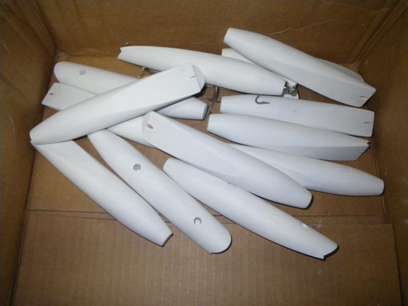 These I did today, small polaris poppers, similar to the white one but I redid the body to a more smooth radius body. Weighting will remain the same, although I will make some heavier so they will sink but cast further. Plenty others in different stages, Conrads, spooks, flaptails,etc.... I also got a few plugfest ones that I can't show.