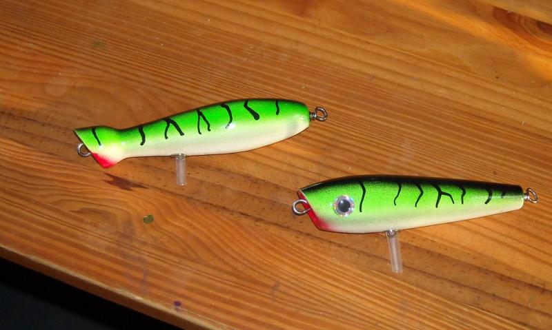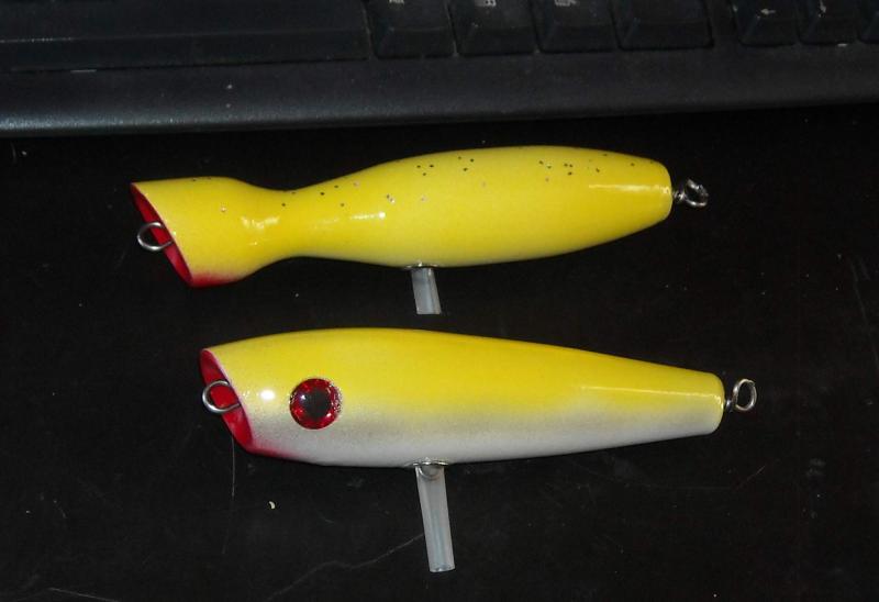 those are lookin sweet... thats funny cause i just turned a 6" polaris today along w some spooks. ahhh topwater dreaming .....
